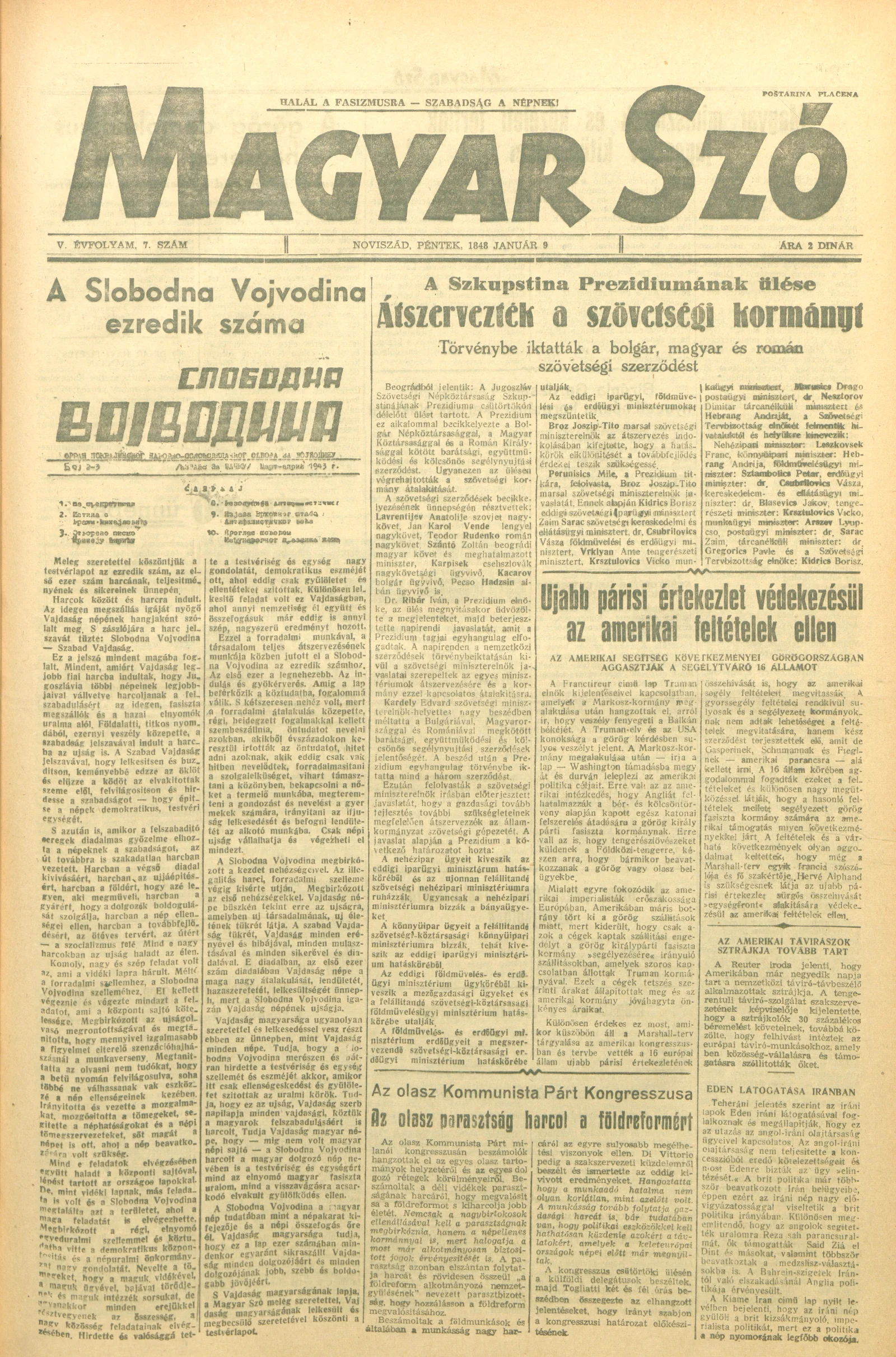 Magyar Szó, 5. évf. 1948. január 9. 7. sz. 1–6. oldal