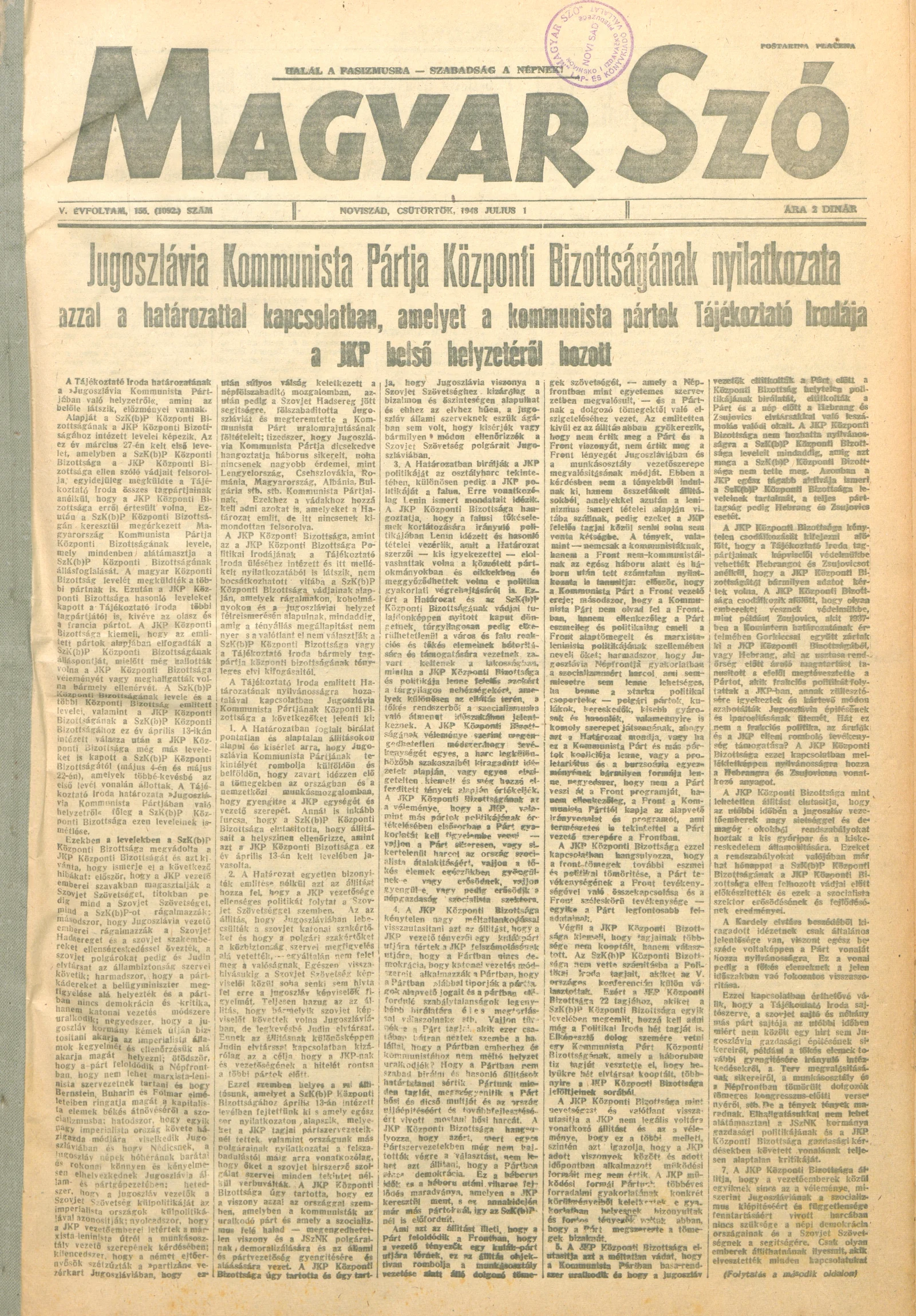 Magyar Szó, 5. évf. 1948. július 1. 155. sz. 1–6. oldal