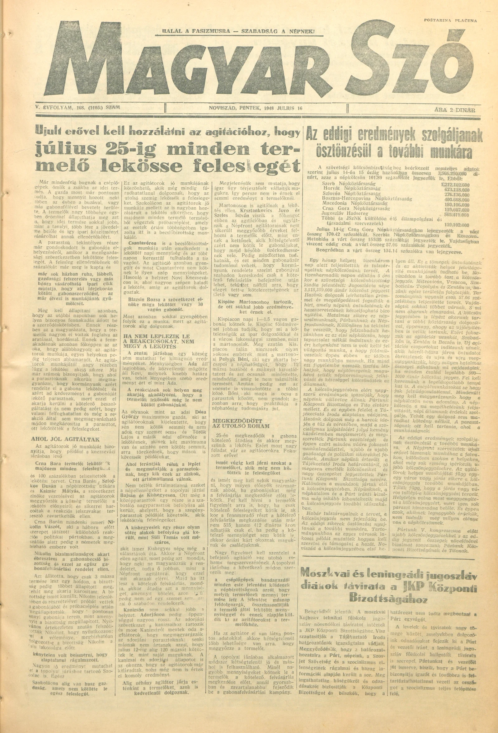 Magyar Szó, 5. évf. 1948. július 16. 168. sz. 1–4. oldal