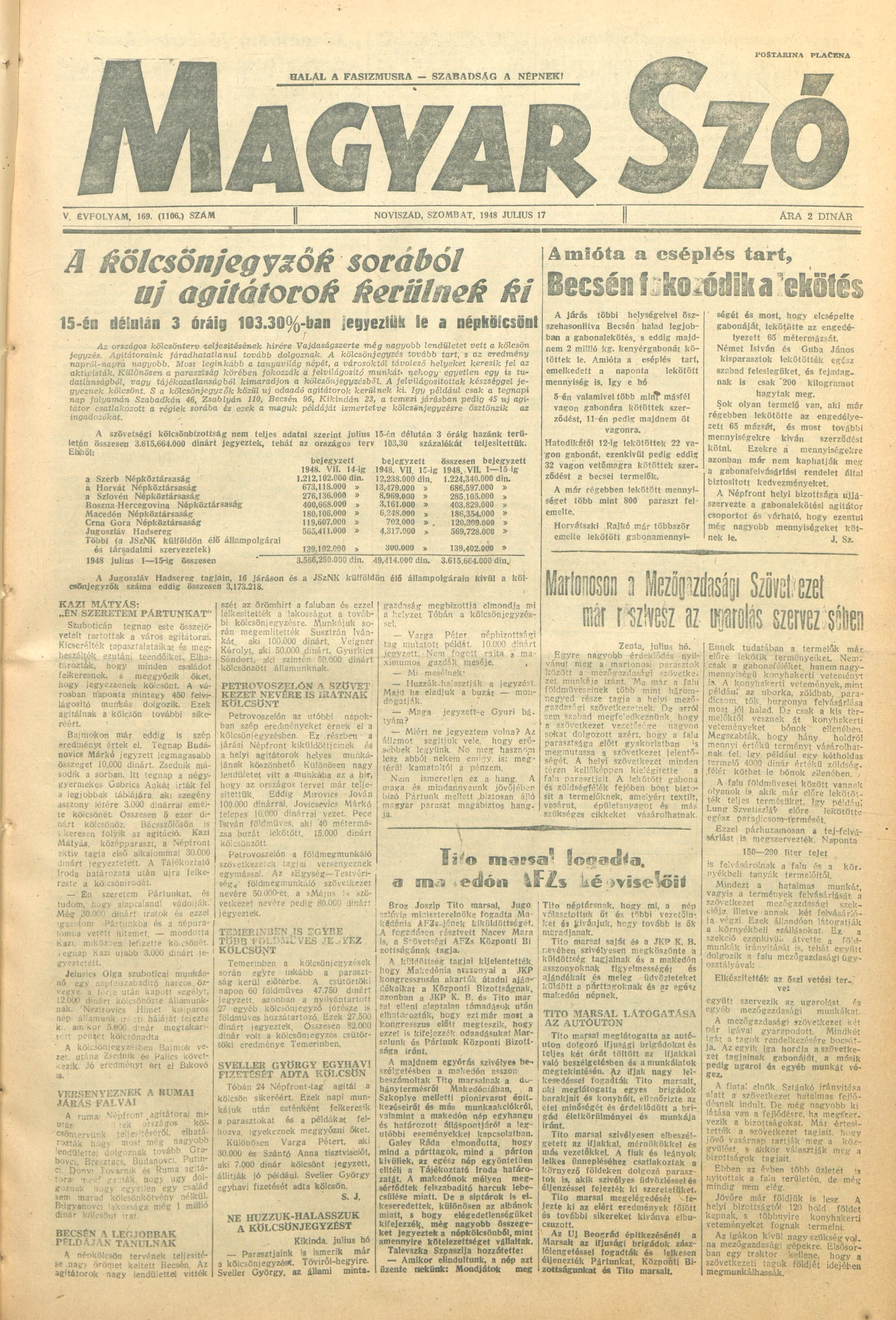 Magyar Szó, 5. évf. 1948. július 17. 169. sz. 1–4. oldal