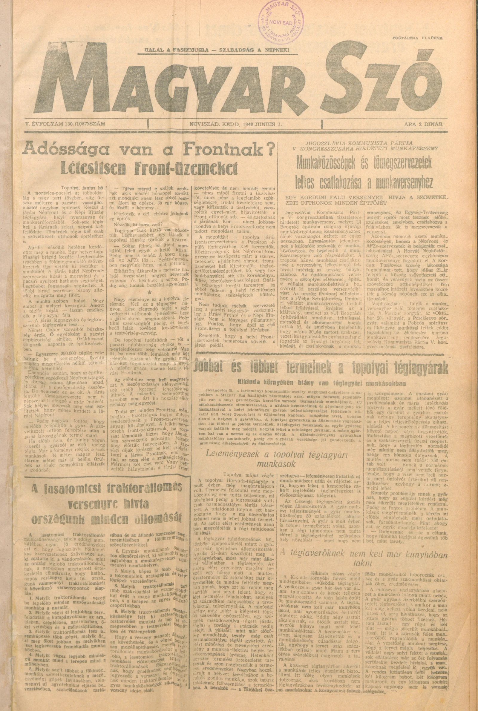 Magyar Szó, 5. évf. 1948. június 1. 130. sz. 1–4. oldal