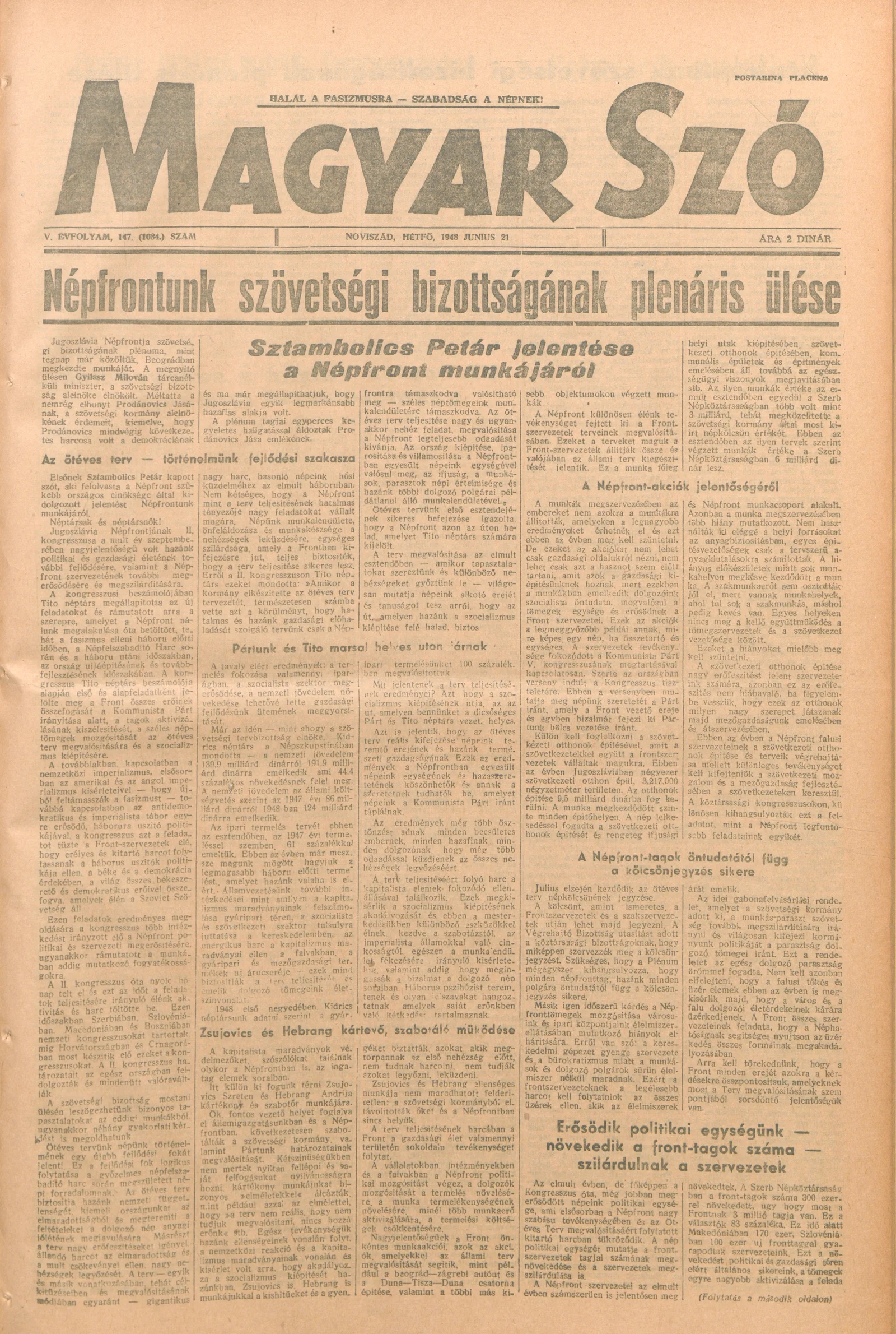 Magyar Szó, 5. évf. 1948. június 21. 147. sz. 1–4. oldal