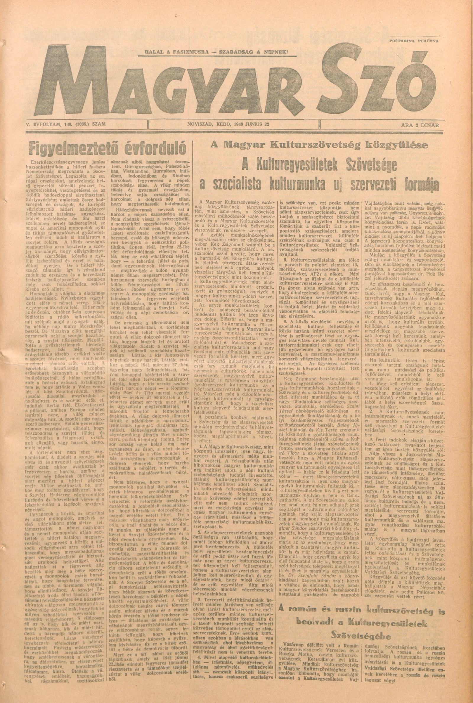 Magyar Szó, 5. évf. 1948. június 22. 148. sz. 1–4. oldal