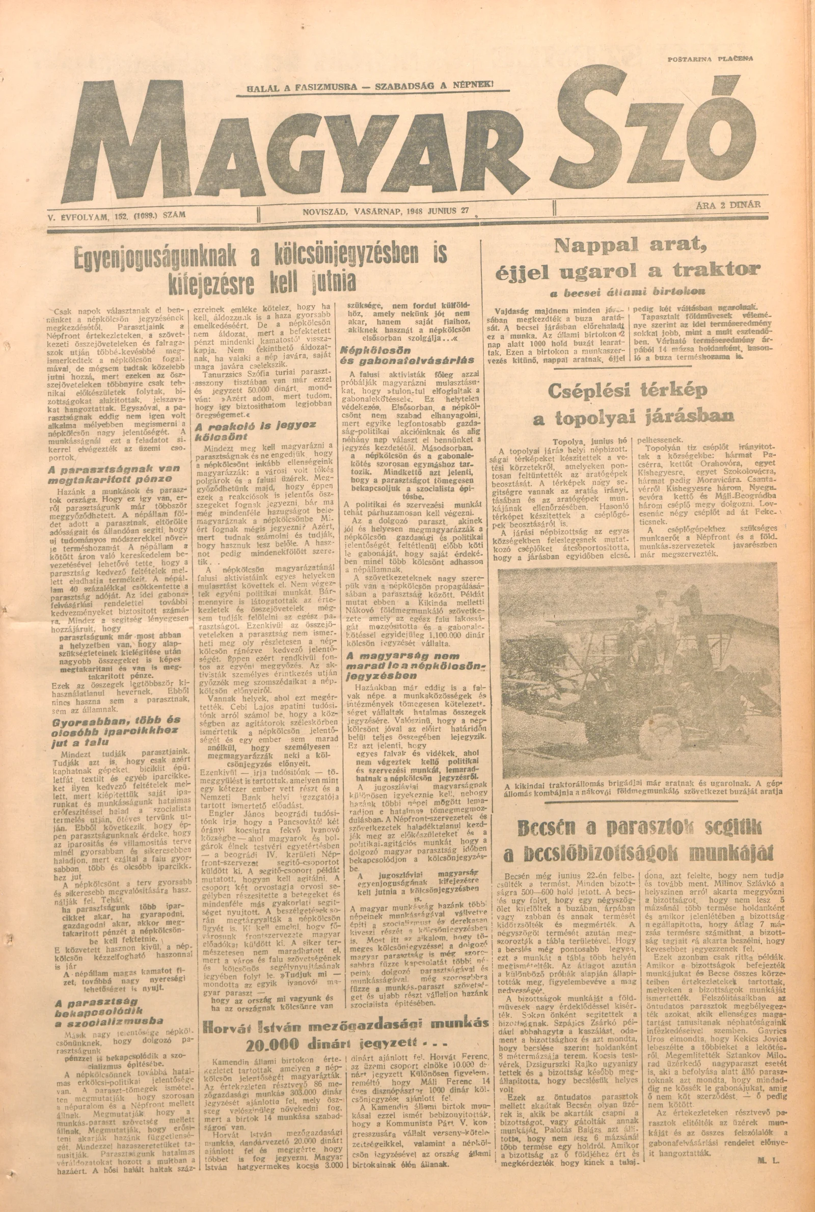 Magyar Szó, 5. évf. 1948. június 27. 152. sz. 1–4. oldal