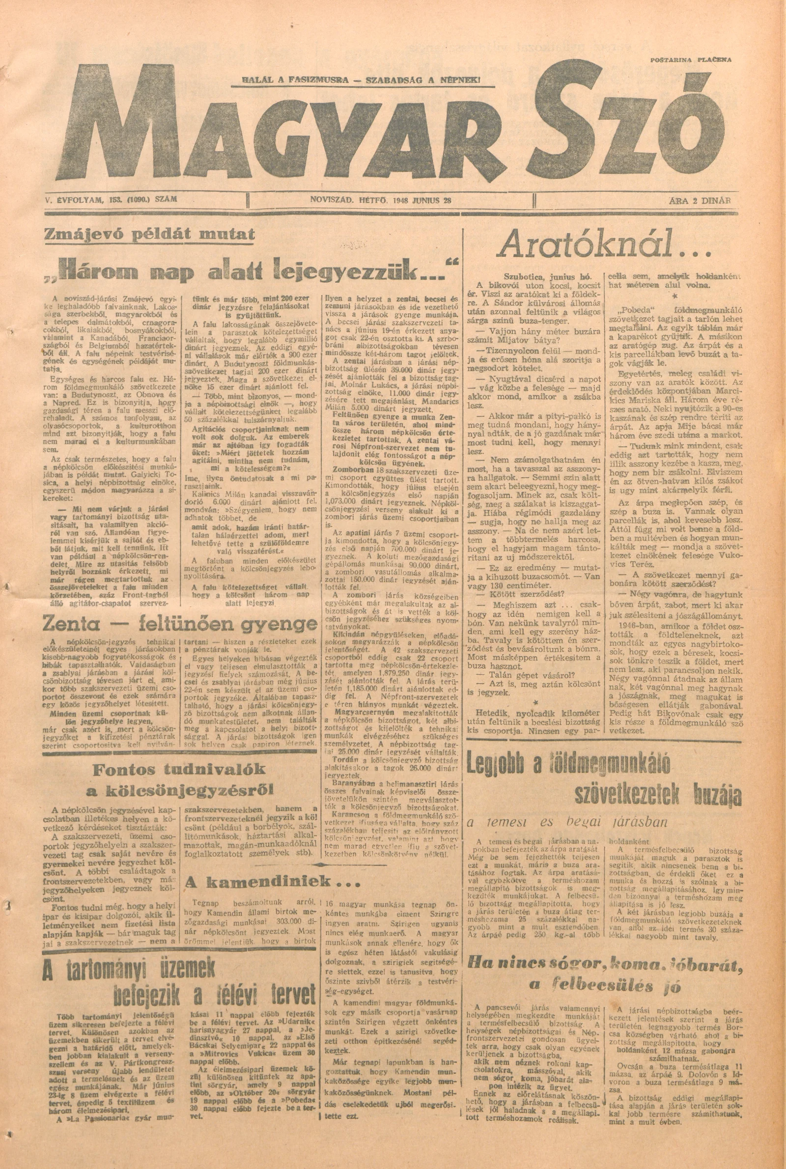 Magyar Szó, 5. évf. 1948. június 28. 153. sz. 1–4. oldal