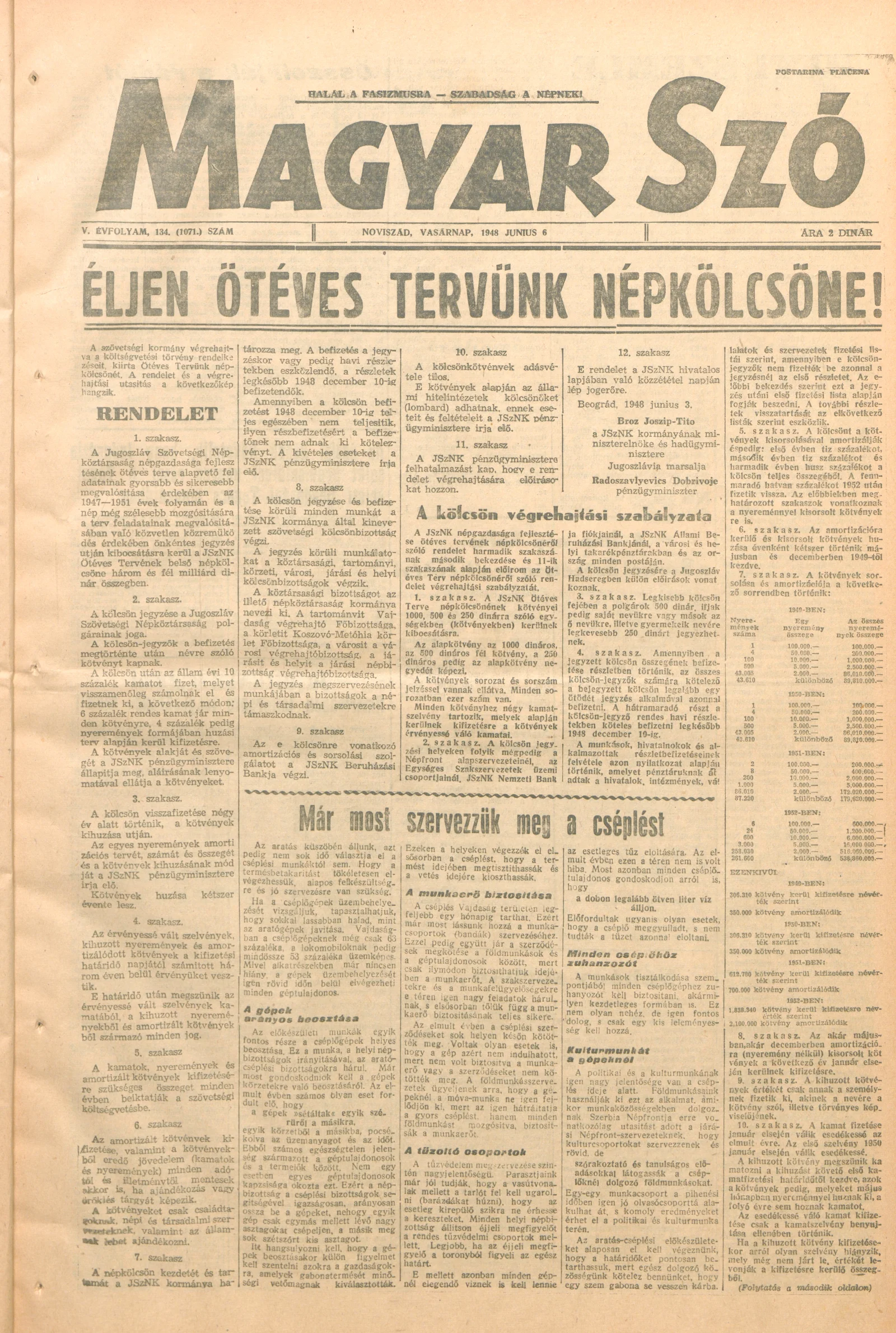 Magyar Szó, 5. évf. 1948. június 6. 134. sz. 1–6. oldal