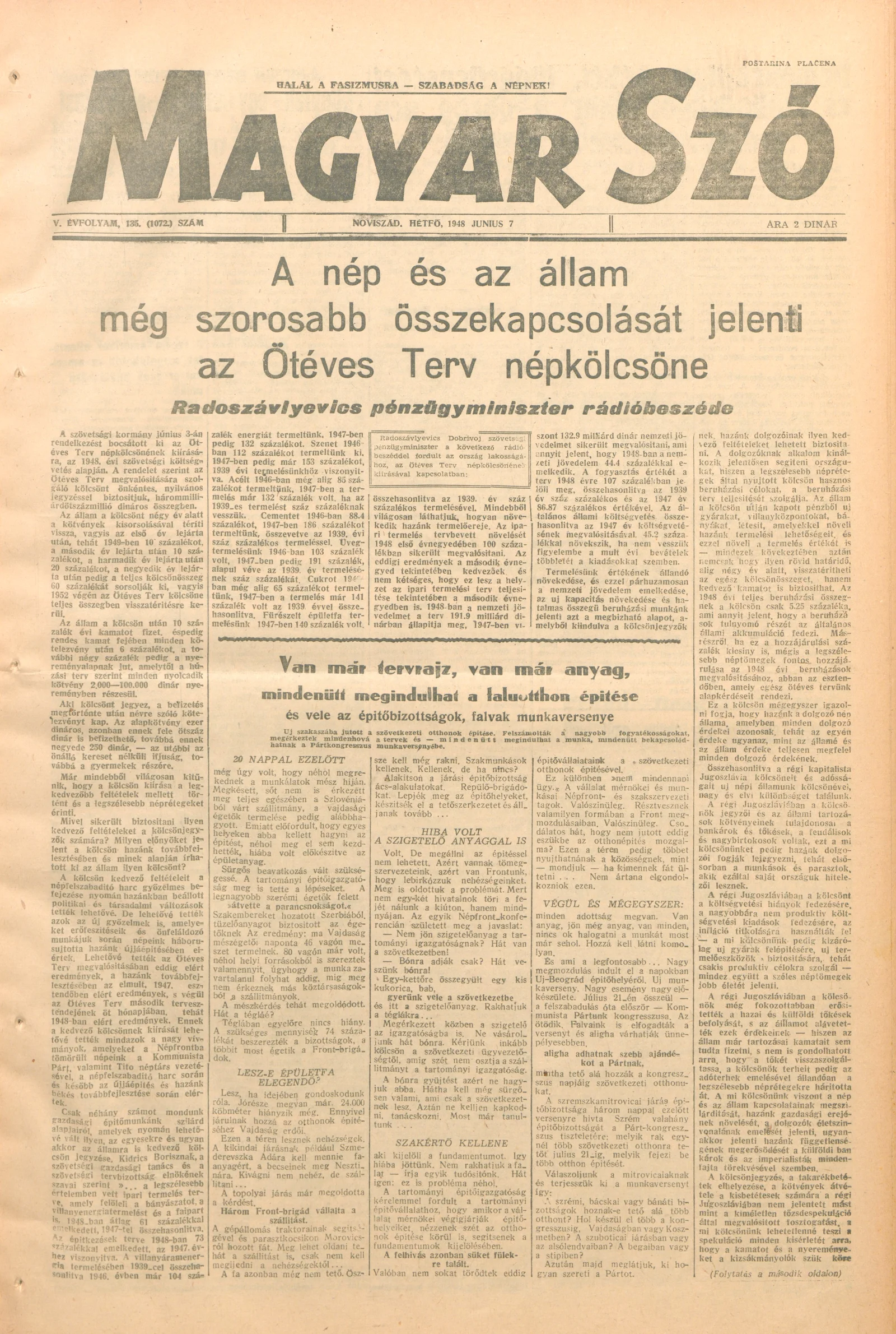 Magyar Szó, 5. évf. 1948. június 7. 135. sz. 1–4. oldal