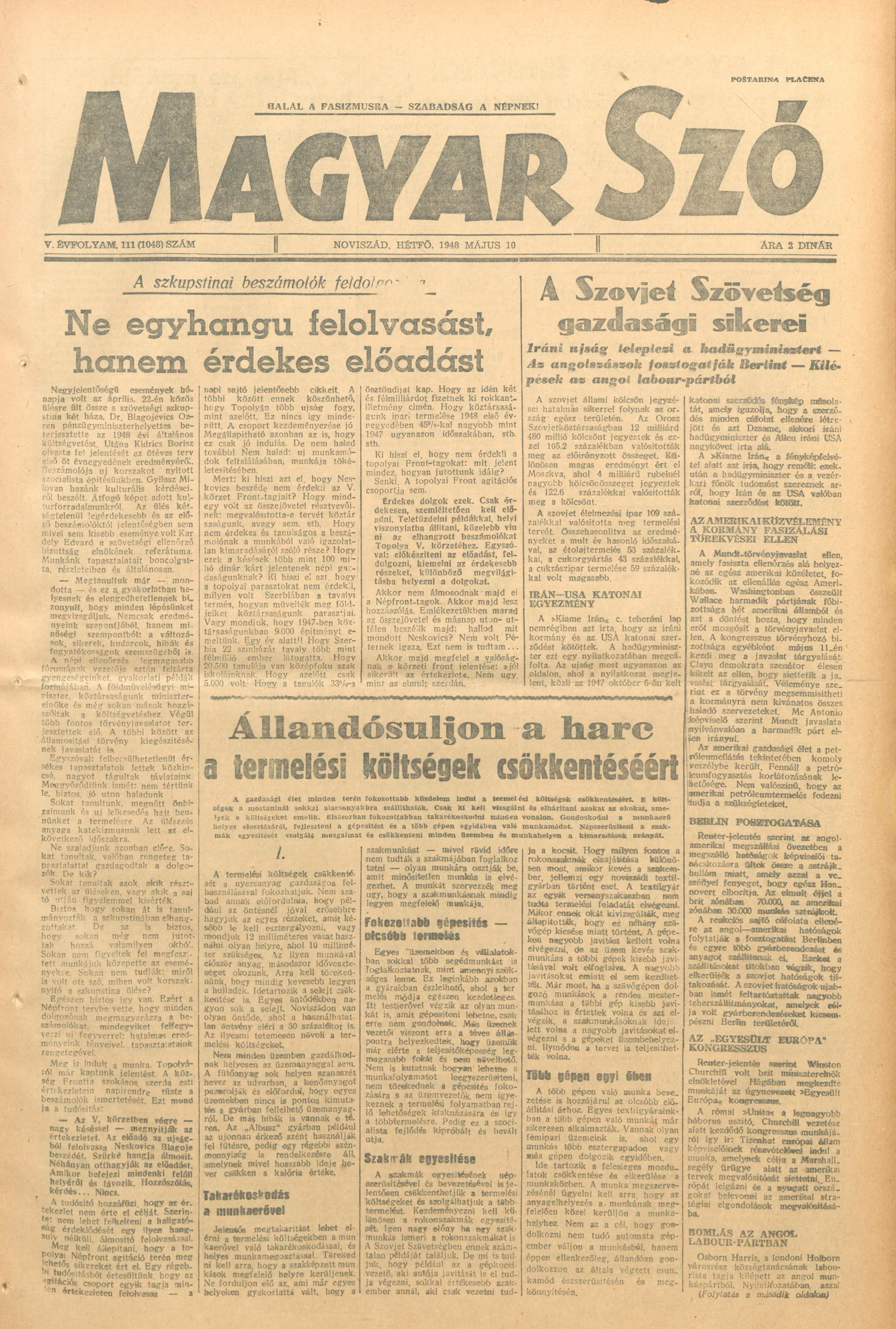 Magyar Szó, 5. évf. 1948. május 10. 111. sz. 1–4. oldal