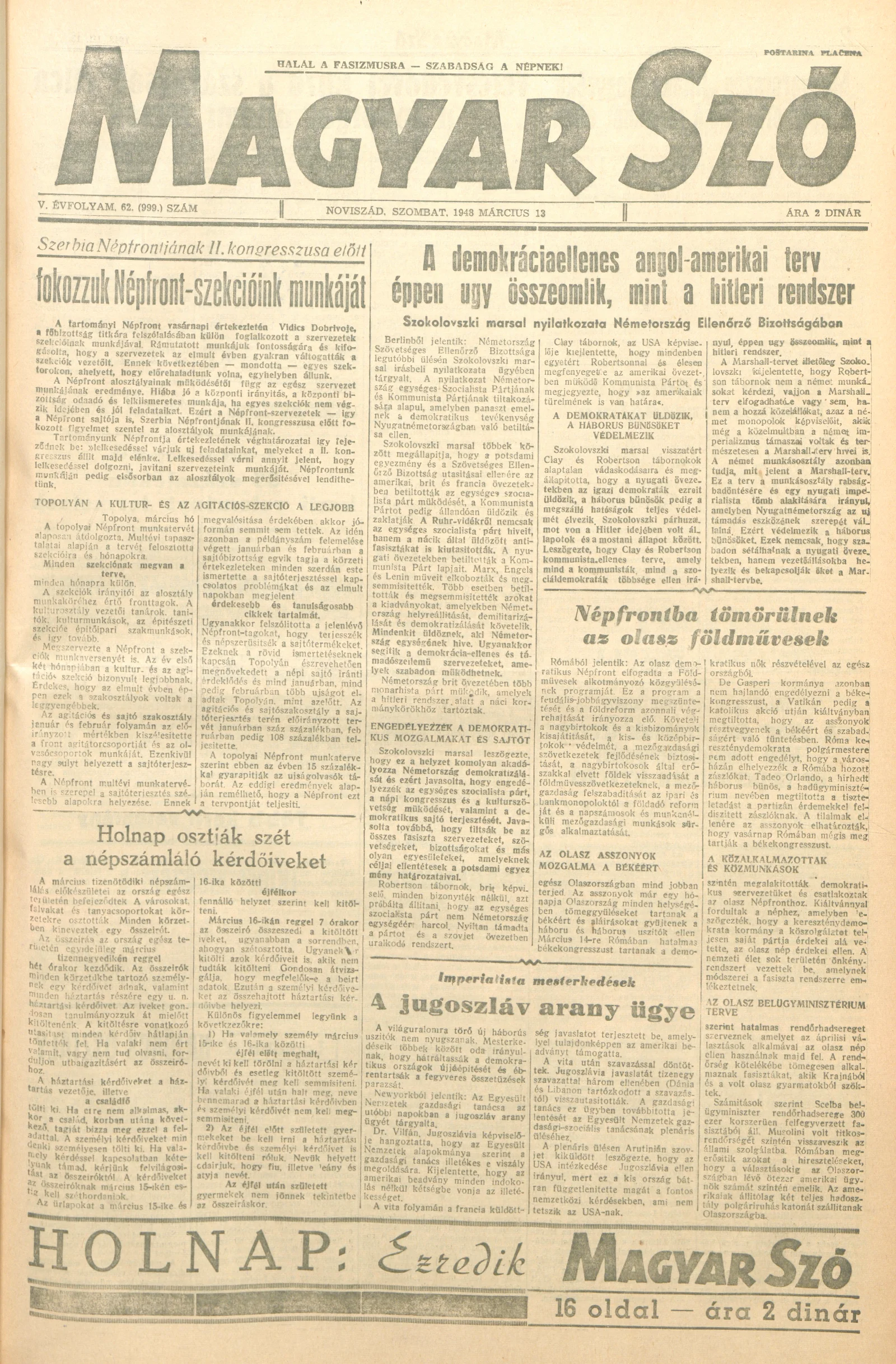 Magyar Szó, 5. évf. 1948. március 13. 62. sz. 1–4. oldal
