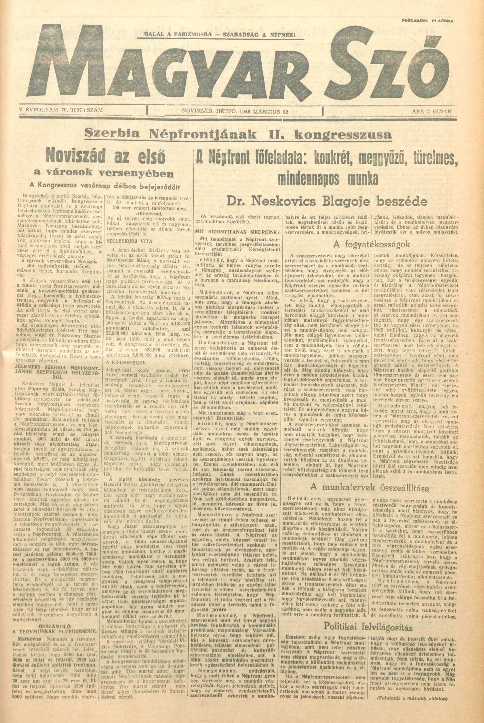 Magyar Szó, 5. évf. 1948. március 22. 70. sz. 1–6. oldal