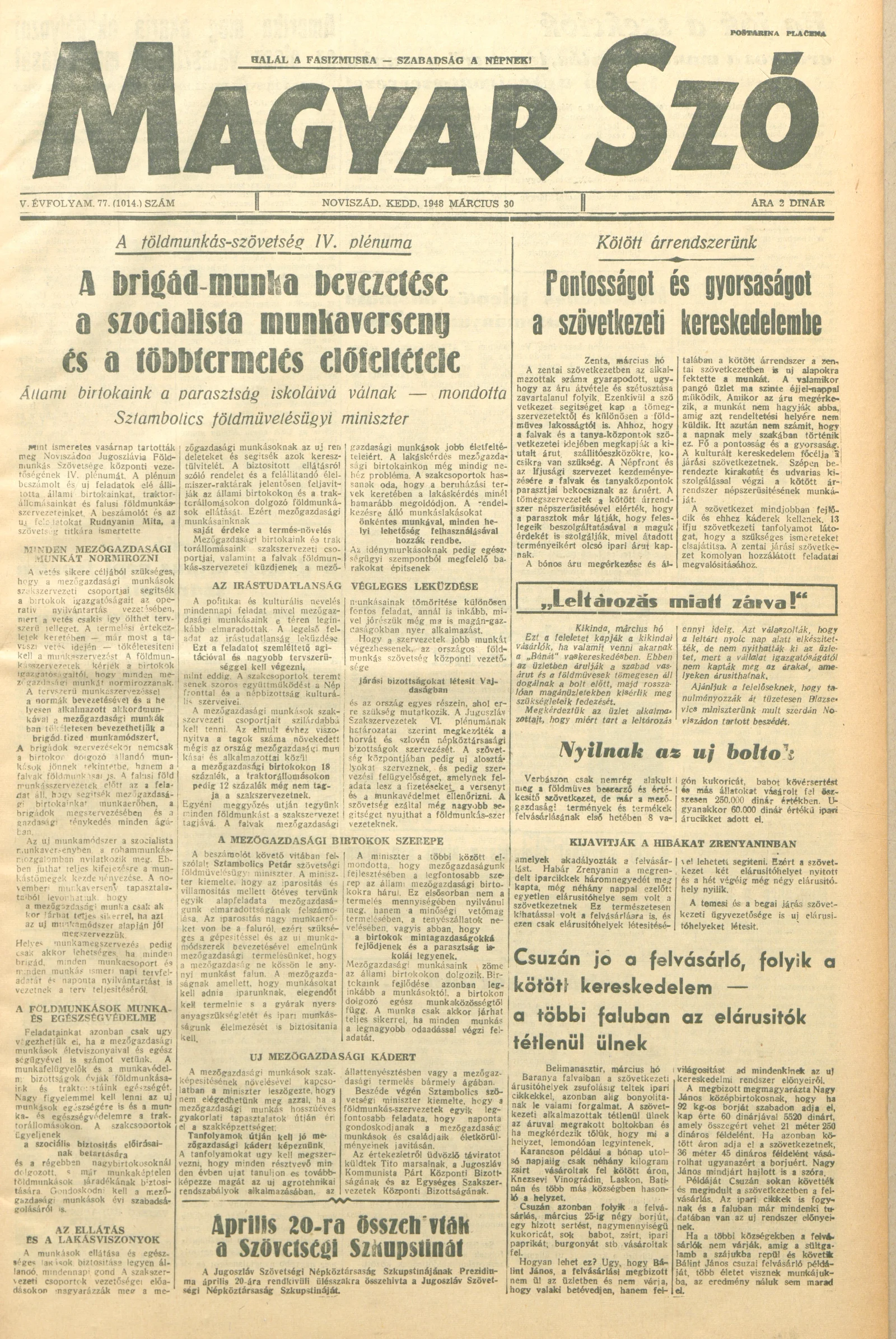 Magyar Szó, 5. évf. 1948. március 30. 77. sz. 1–4. oldal