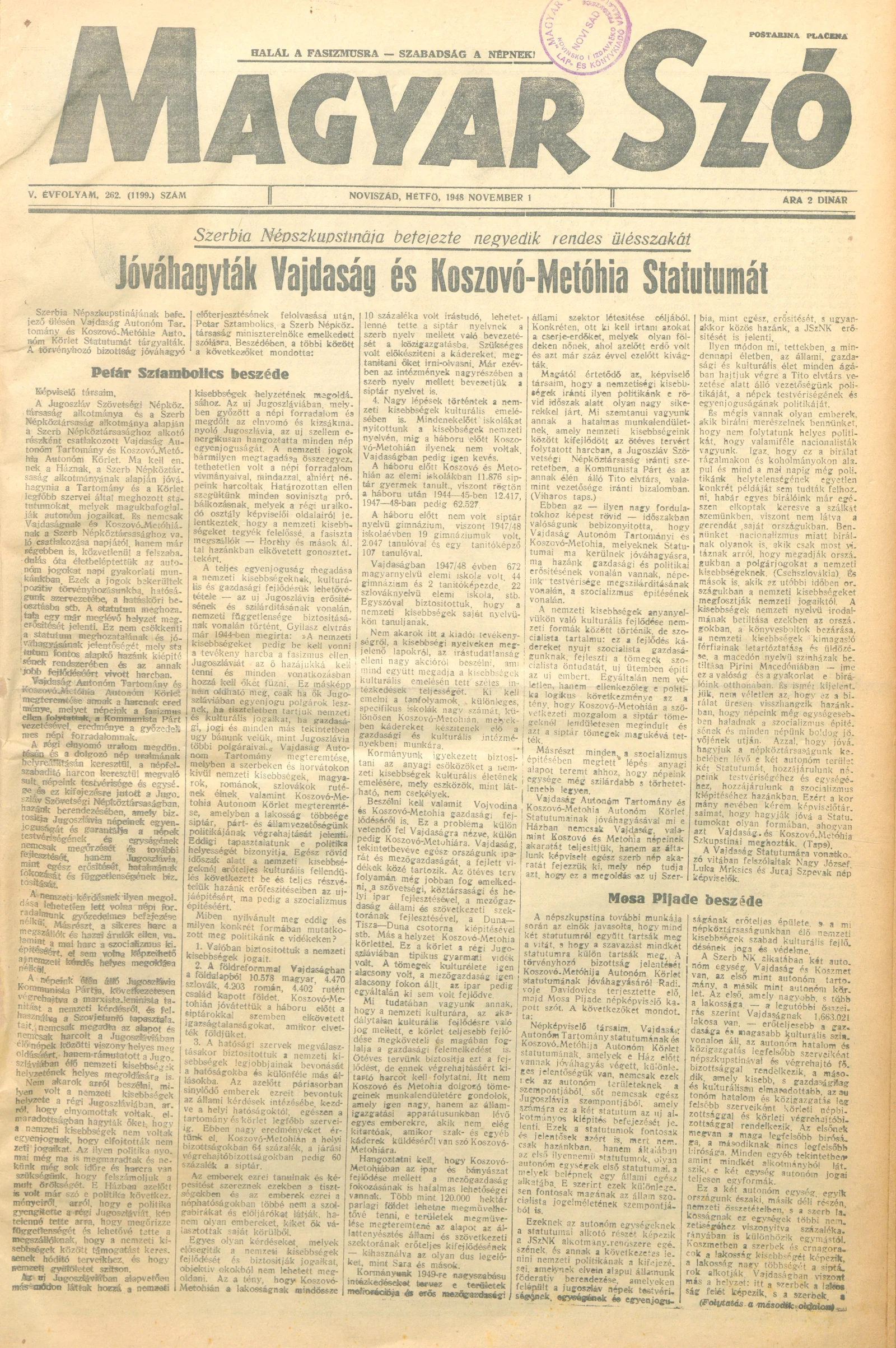 Magyar Szó, 5. évf. 1948. november 1. 262. sz. 1–4. oldal