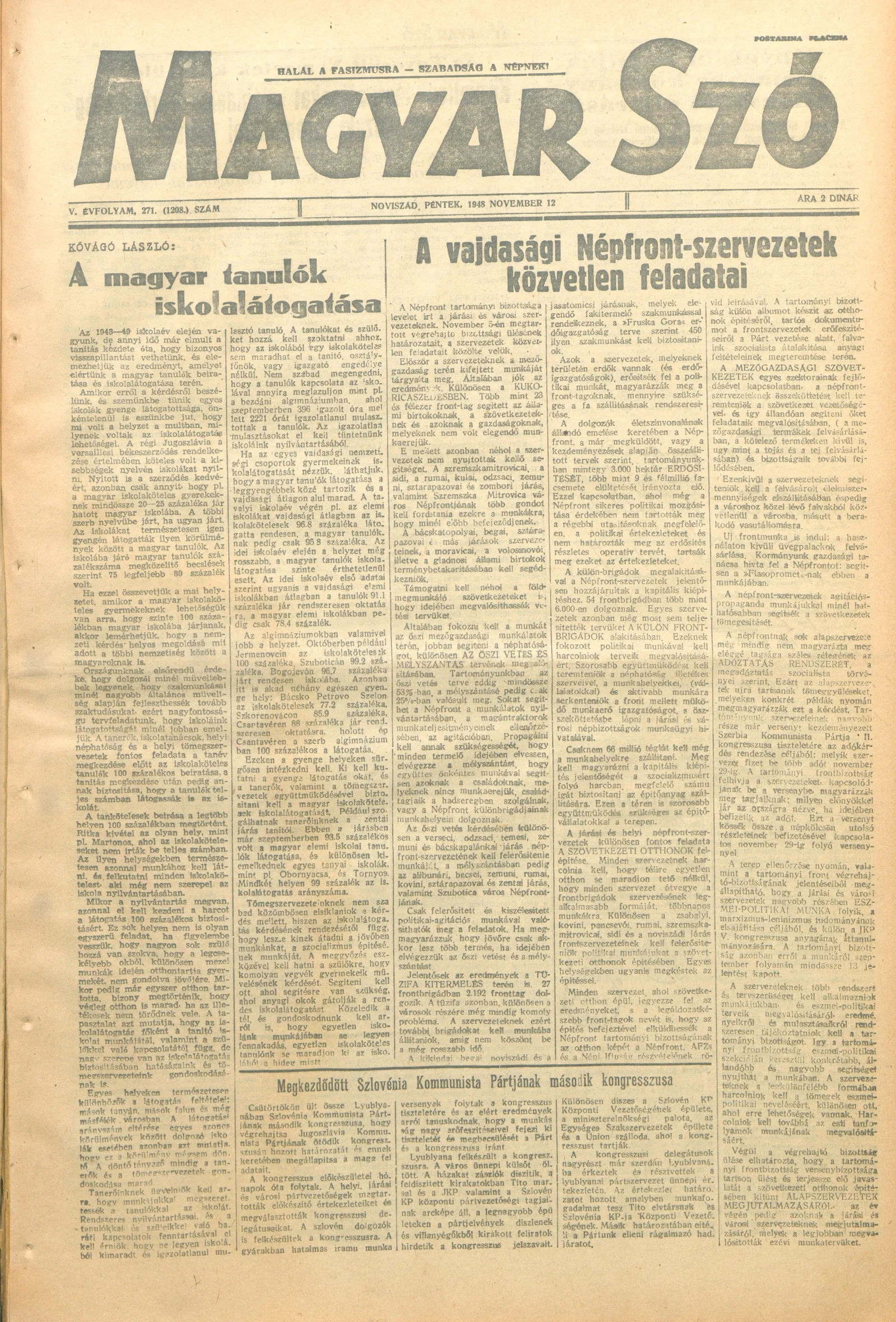 Magyar Szó, 5. évf. 1948. november 12. 271. sz. 1–4. oldal