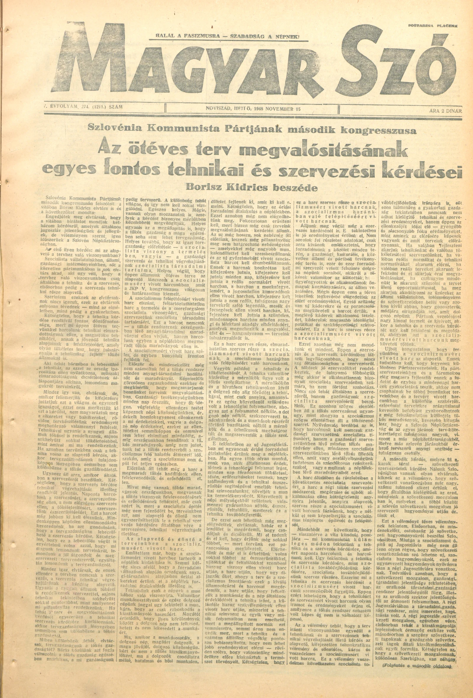 Magyar Szó, 5. évf. 1948. november 15. 274. sz. 1–4. oldal