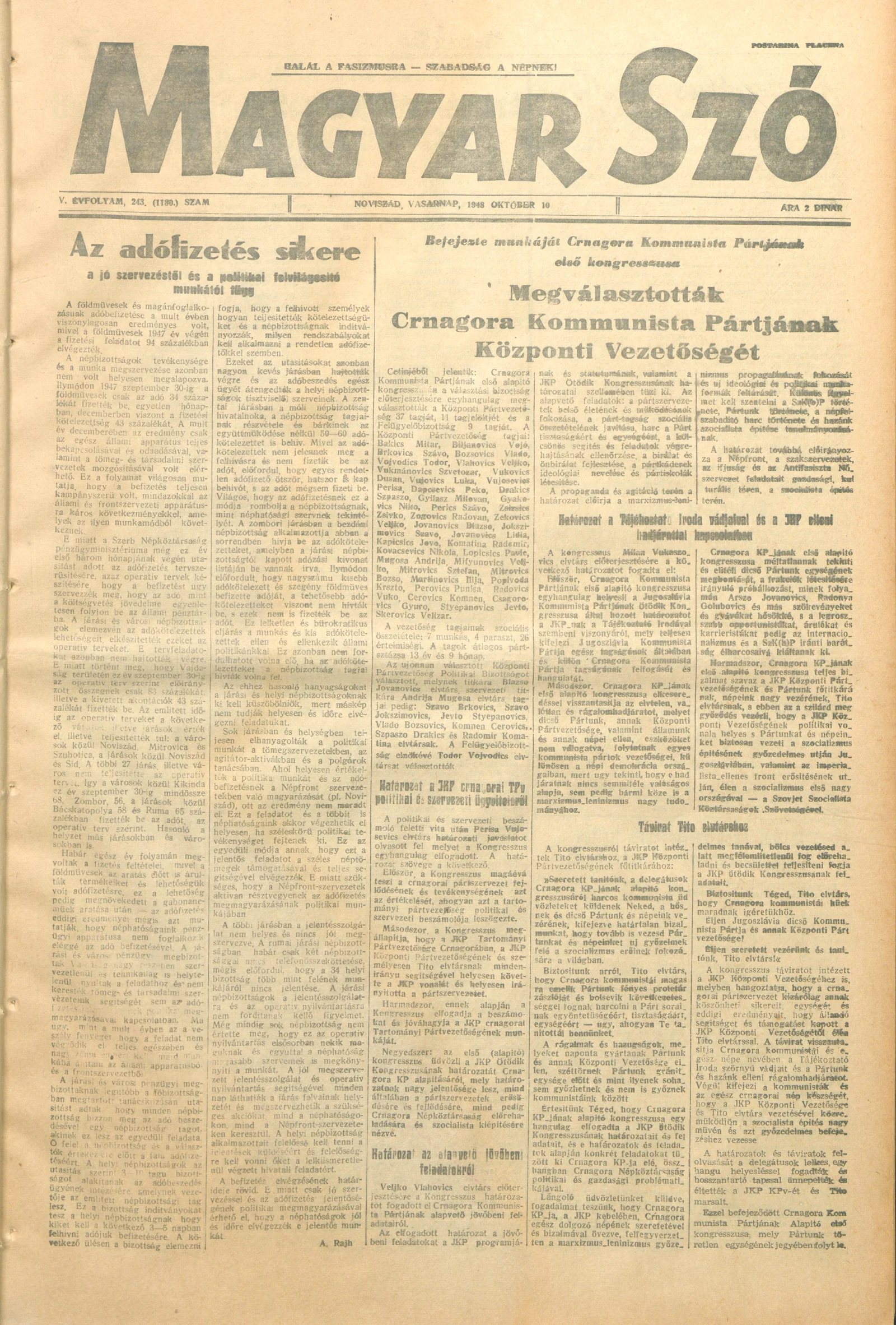 Magyar Szó, 5. évf. 1948. október 10. 243. sz. 1–4. oldal