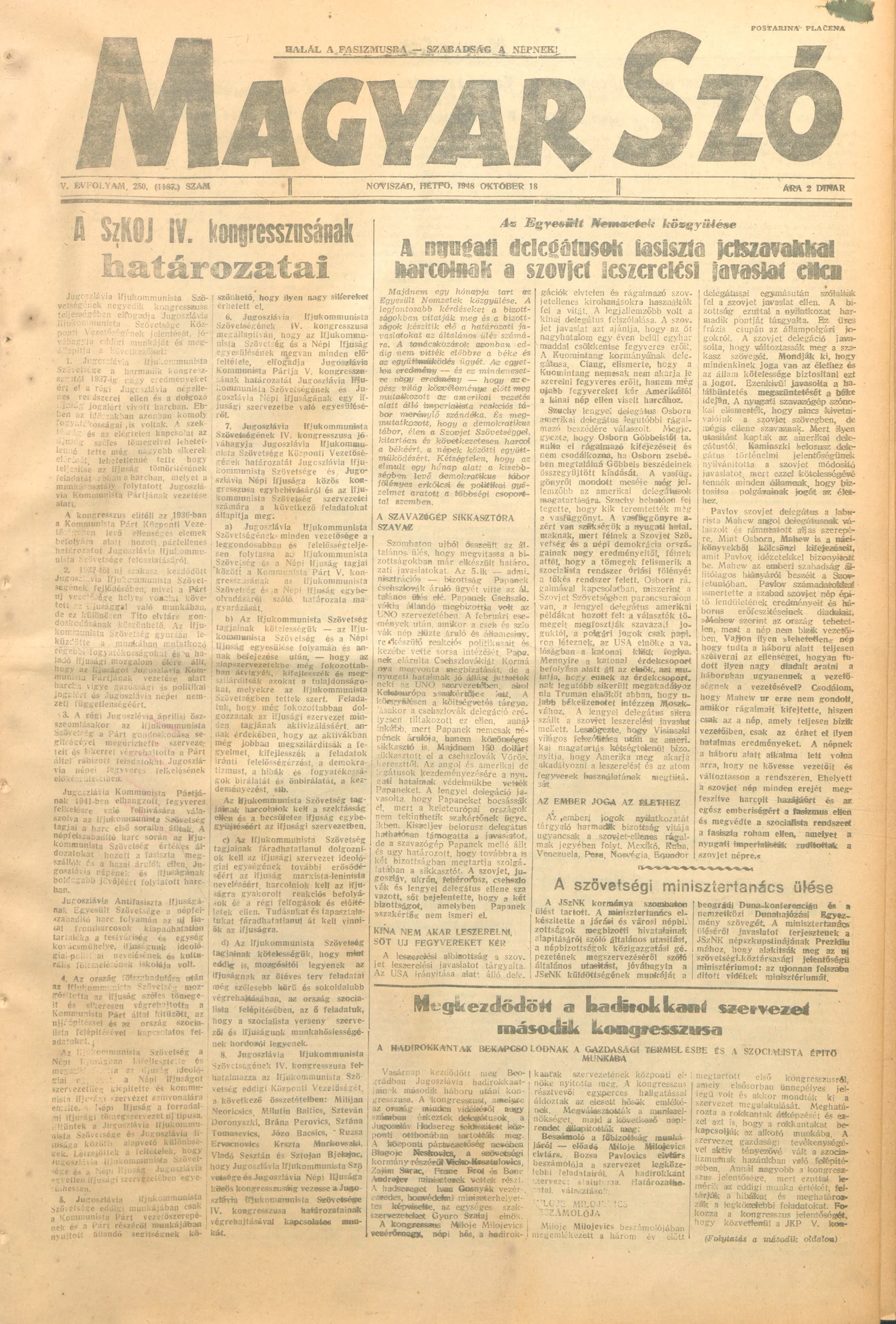 Magyar Szó, 5. évf. 1948. október 18. 250. sz. 1–4. oldal