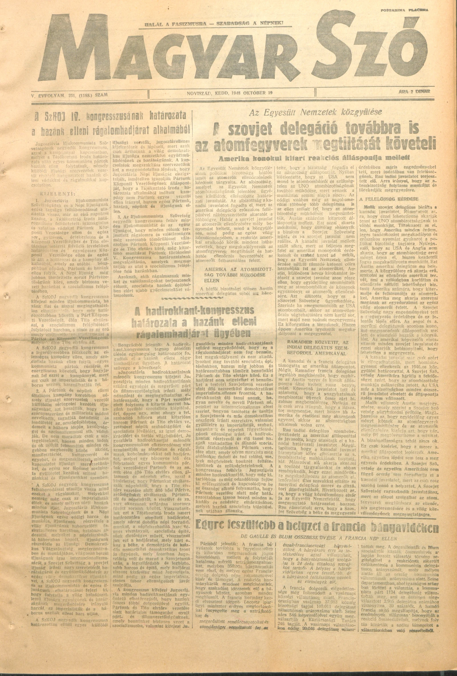 Magyar Szó, 5. évf. 1948. október 19. 251. sz. 1–4. oldal