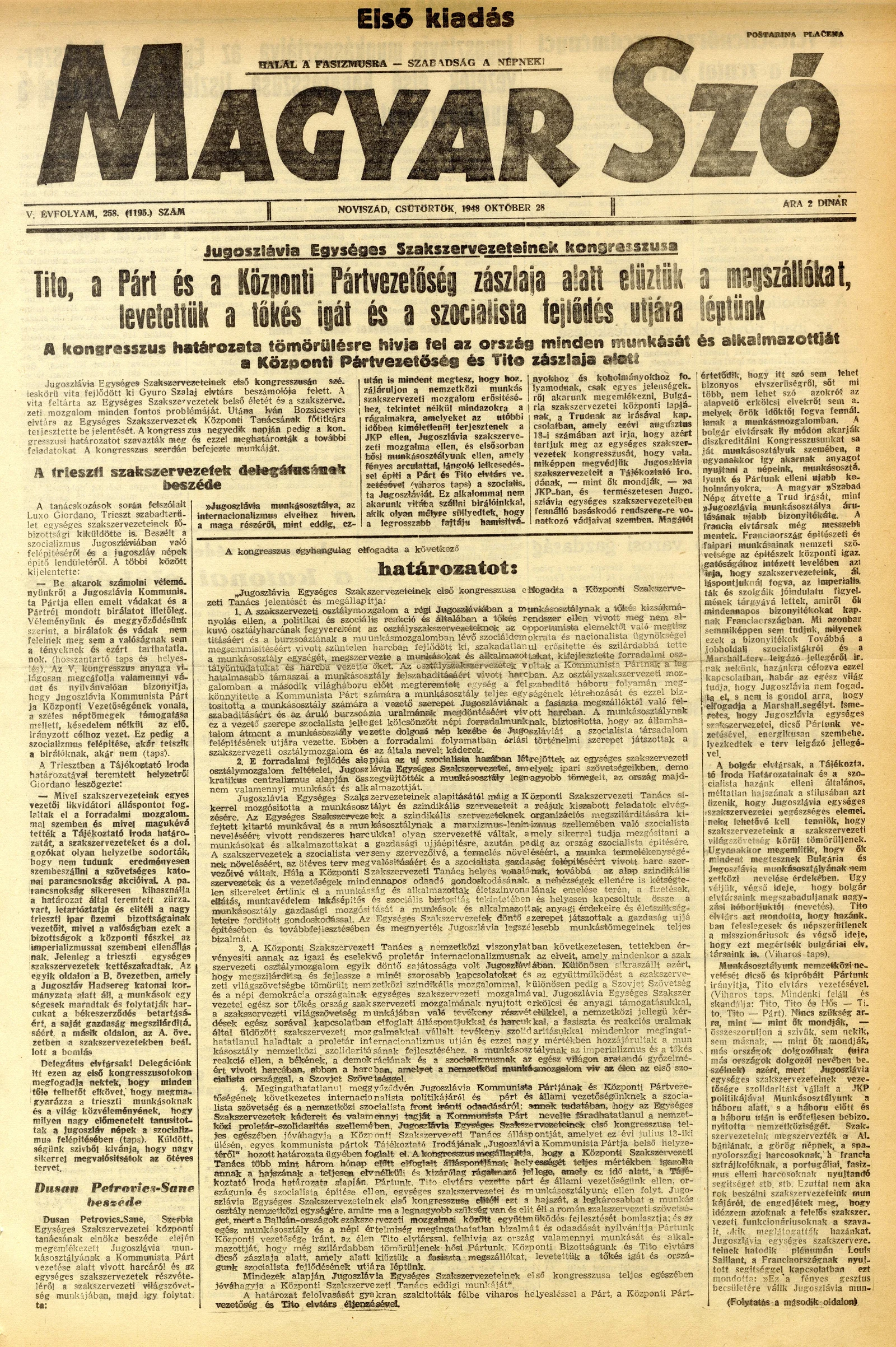 Magyar Szó, 5. évf. 1948. október 28. 258. sz. 1–8. oldal