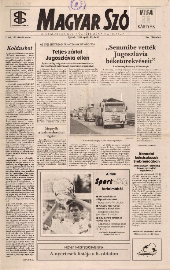Magyar Szó, 50. évf. 1993. április 19. 105. sz. 1–16. oldal