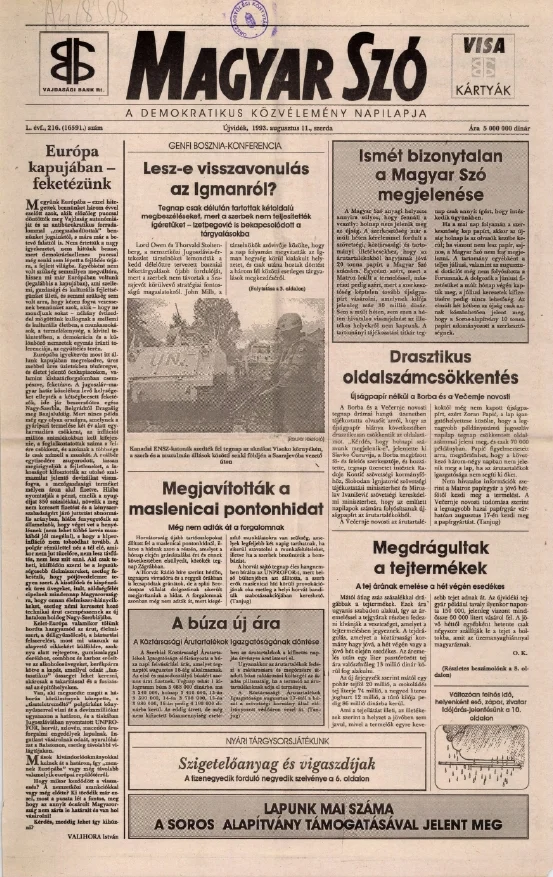 Magyar Szó, 50. évf. 1993. augusztus 11. 216. sz. 1–12. oldal