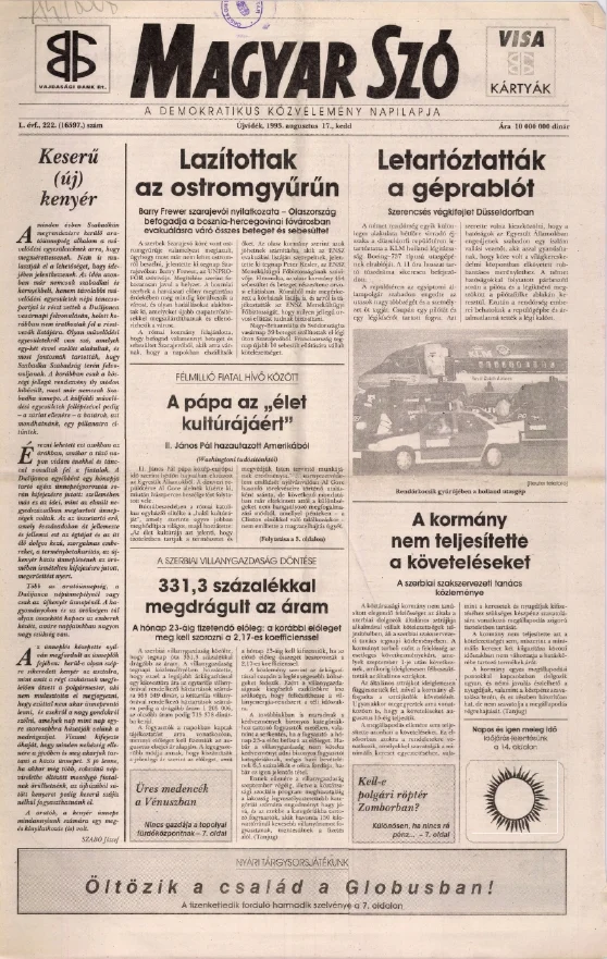 Magyar Szó, 50. évf. 1993. augusztus 17. 222. sz. 1–16. oldal
