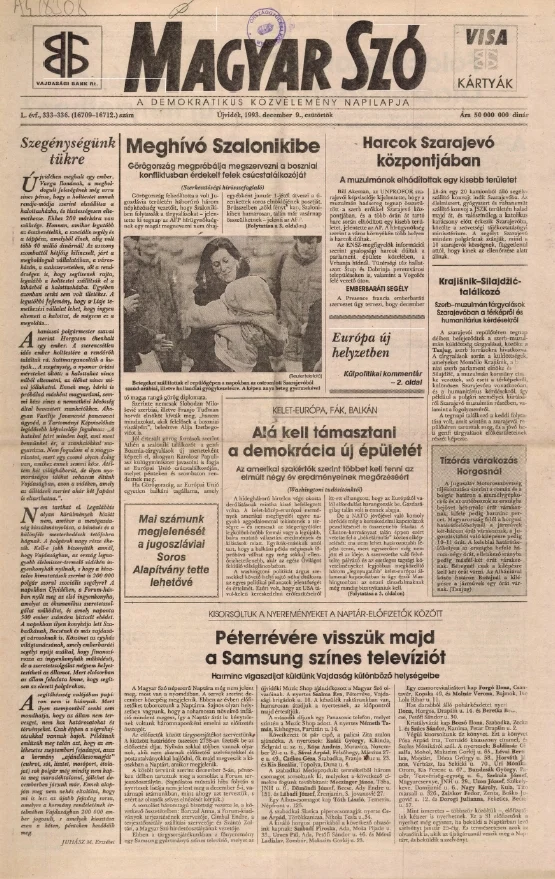 Magyar Szó, 50. évf. 1993. december 9. 333–336. sz. 1–8. oldal
