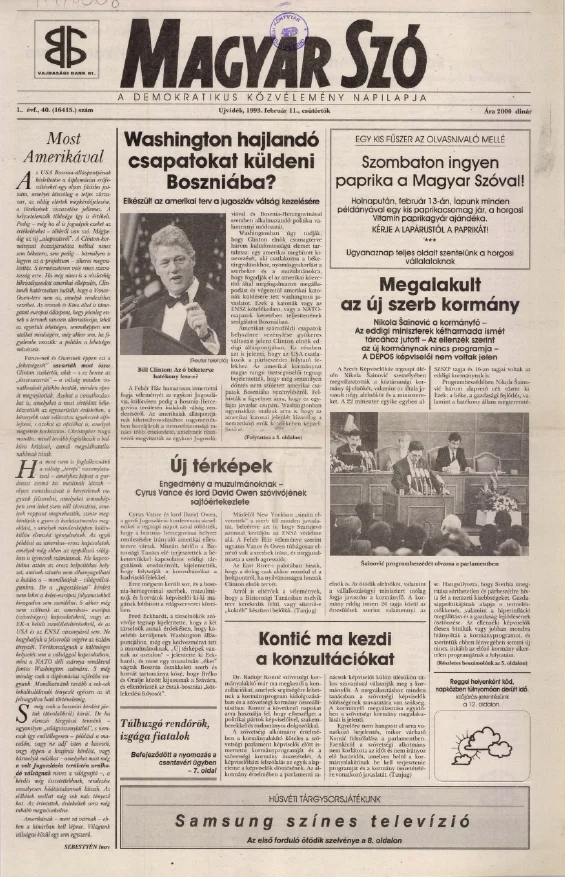 Magyar Szó, 50. évf. 1993. február 11. 40. sz. 1–16. oldal