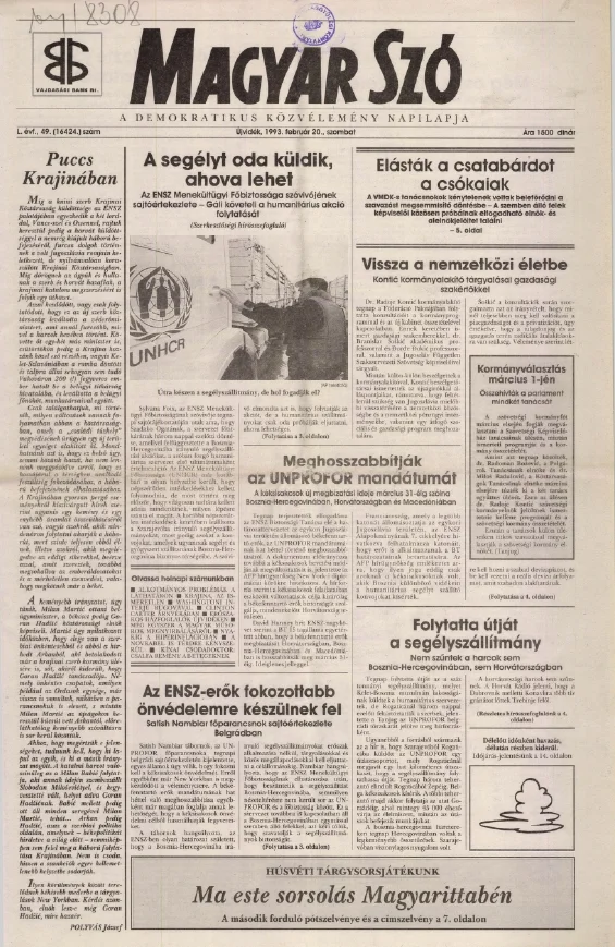 Magyar Szó, 50. évf. 1993. február 20. 49. sz. 1–16. oldal