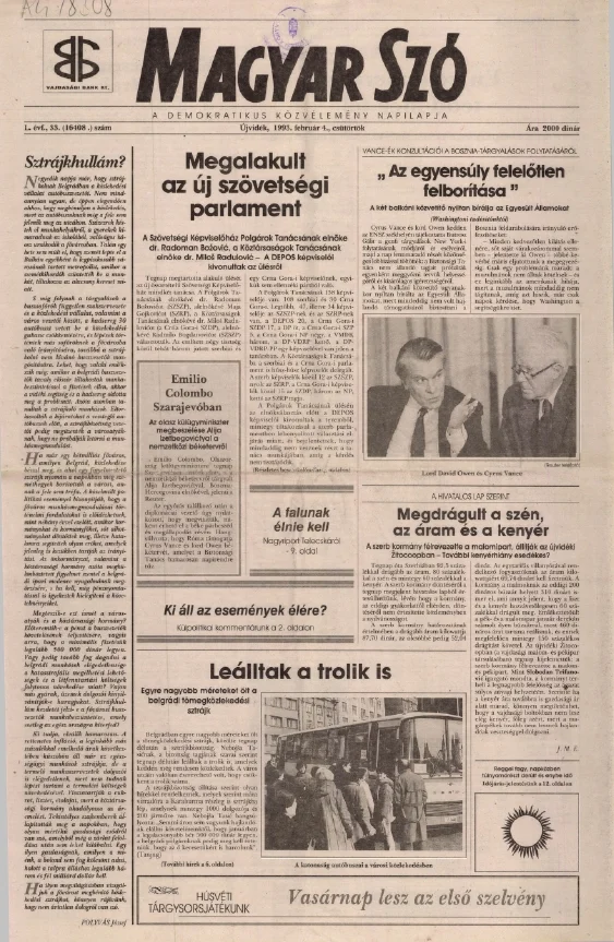 Magyar Szó, 50. évf. 1993. február 4. 33. sz. 1–16. oldal