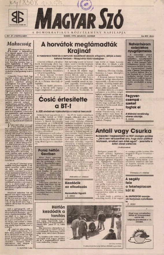 Magyar Szó, 50. évf. 1993. január 23. 21. sz. 1–16. oldal