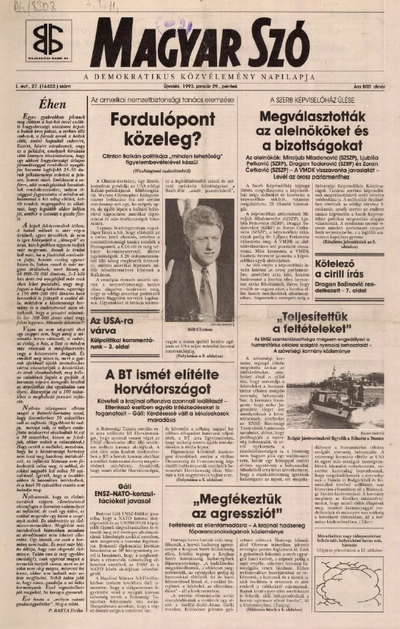 Magyar Szó, 50. évf. 1993. január 29. 27. sz. 1–16. oldal