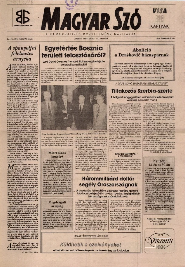 Magyar Szó, 50. évf. 1993. július 10. 184. sz. 1–16. oldal