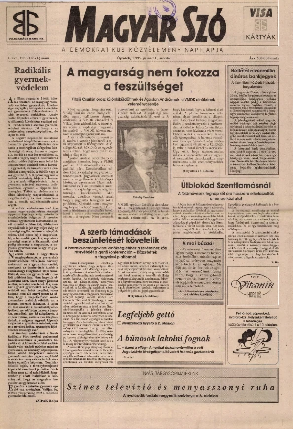 Magyar Szó, 50. évf. 1993. július 21. 195. sz. 1–12. oldal