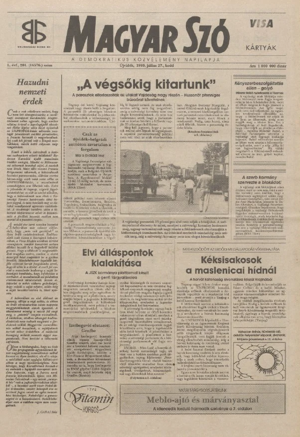 Magyar Szó, 50. évf. 1993. július 27. 201. sz. 1–16. oldal
