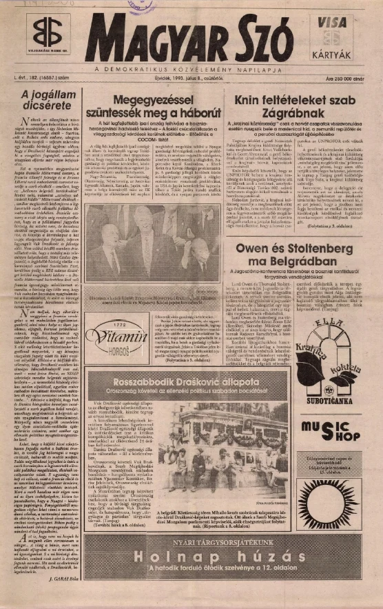 Magyar Szó, 50. évf. 1993. július 8. 182. sz. 1–16. oldal