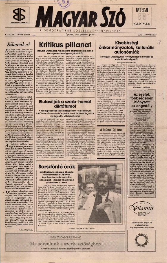 Magyar Szó, 50. évf. 1993. július 9. 183. sz. 1–16. oldal