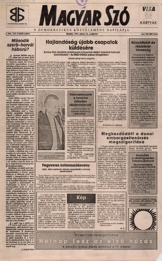Magyar Szó, 50. évf. 1993. június 10. 154. sz. 1–16. oldal