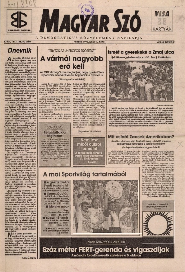 Magyar Szó, 50. évf. 1993. június 7. 151. sz. 1–16. oldal