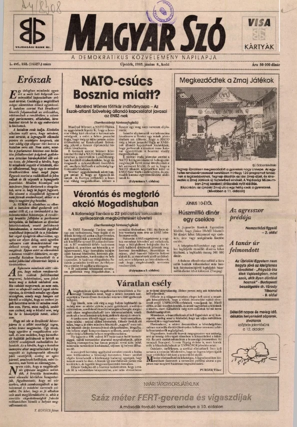 Magyar Szó, 50. évf. 1993. június 8. 152. sz. 1–16. oldal