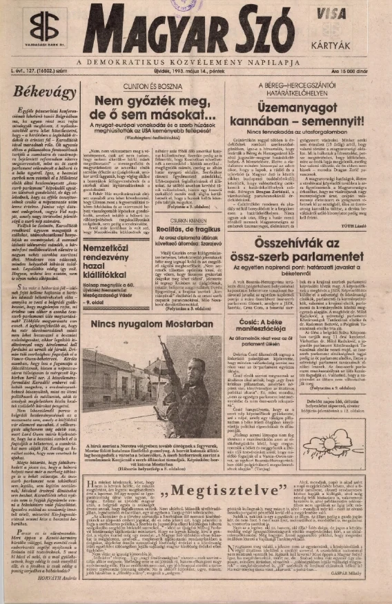 Magyar Szó, 50. évf. 1993. május 14. 127. sz. 1–16. oldal