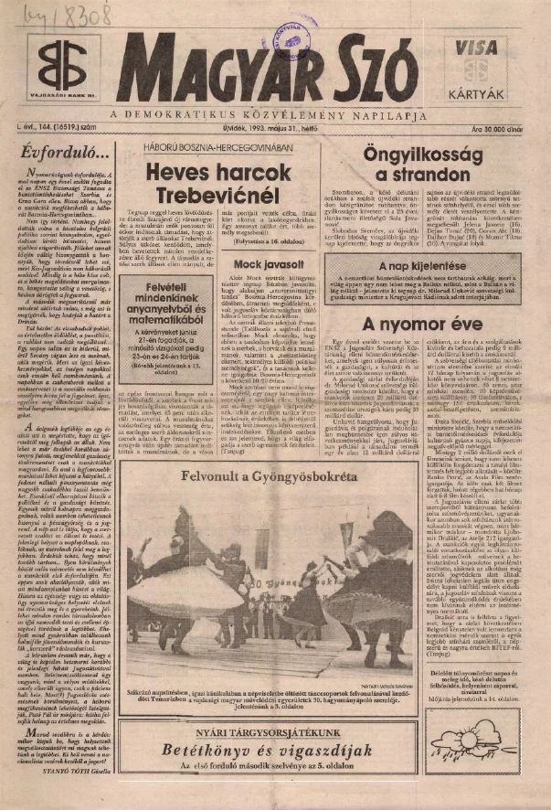 Magyar Szó, 50. évf. 1993. május 31. 144. sz. 1–16. oldal