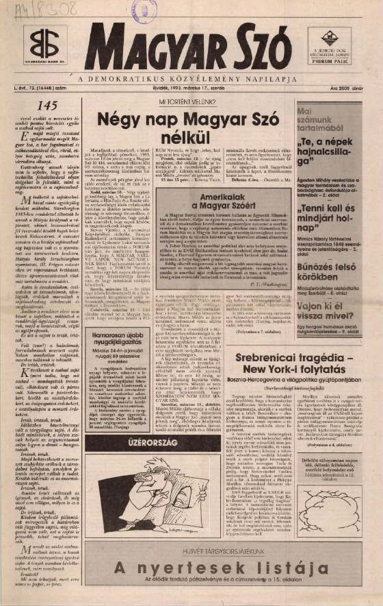 Magyar Szó, 50. évf. 1993. március 17. 73. sz. 1–24. oldal