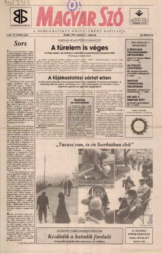 Magyar Szó, 50. évf. 1993. március 21. 77. sz. 1–24. oldal