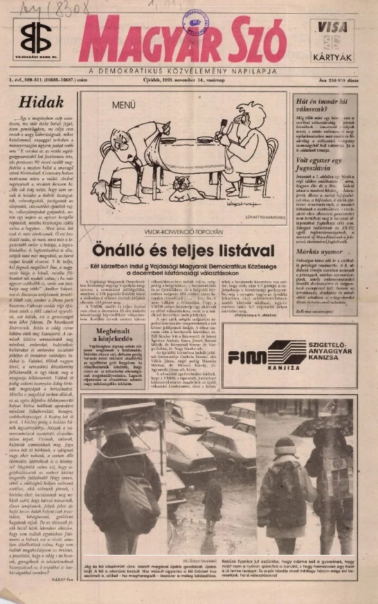 Magyar Szó, 50. évf. 1993. november 14. 309–311. sz. 1–24. oldal