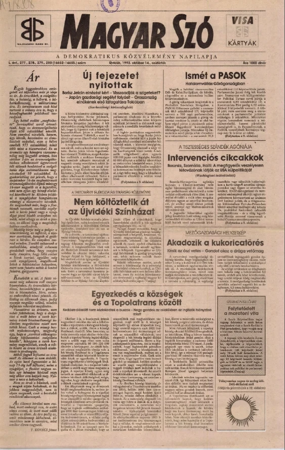 Magyar Szó, 50. évf. 1993. október 14. 277–280. sz. 1–16. oldal