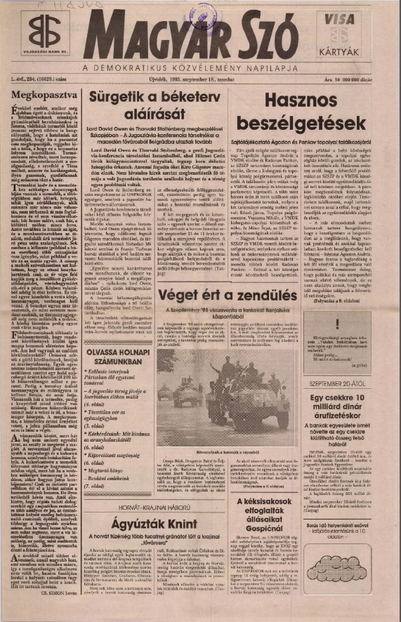 Magyar Szó, 50. évf. 1993. szeptember 18. 254. sz. 1–16. oldal