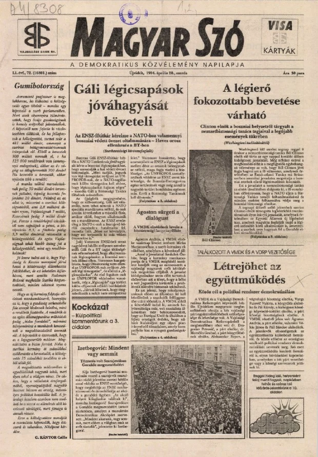 Magyar Szó, 51. évf. 1994. április 20. 72. sz. 1–16. oldal