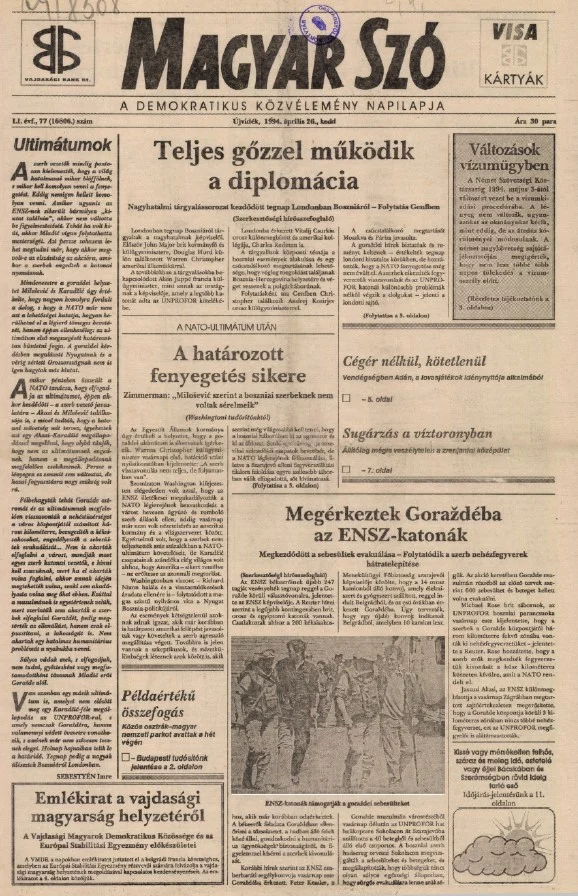 Magyar Szó, 51. évf. 1994. április 26. 77. sz. 1–16. oldal
