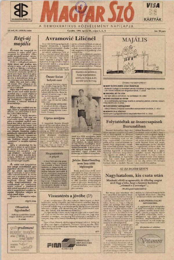 Magyar Szó, 51. évf. 1994. április 30. – május 3. 81. sz. 1–28. oldal