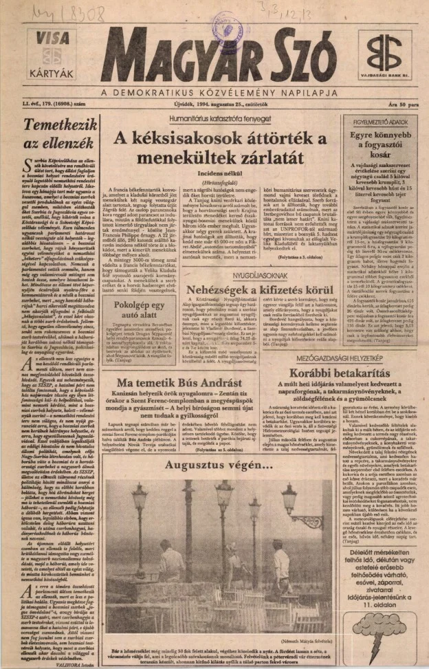 Magyar Szó, 51. évf. 1994. augusztus 25. 179. sz. 1–16. oldal